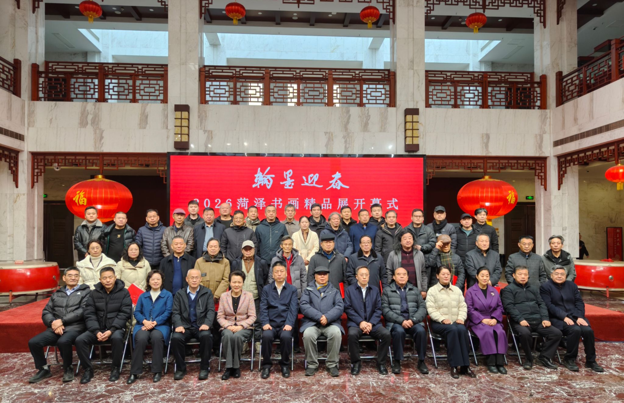 为厚植师生艺术素养,深挖传统书画创作精髓,12月31日上午,菏泽学院美术与设计学院院长高卓、美术系主任刁国强、书法系主任张海同及美术学、书法学专业师生代表一行,赴菏泽市李荣海美术馆参加“翰墨迎春——2026菏泽书画精品展”开幕式。