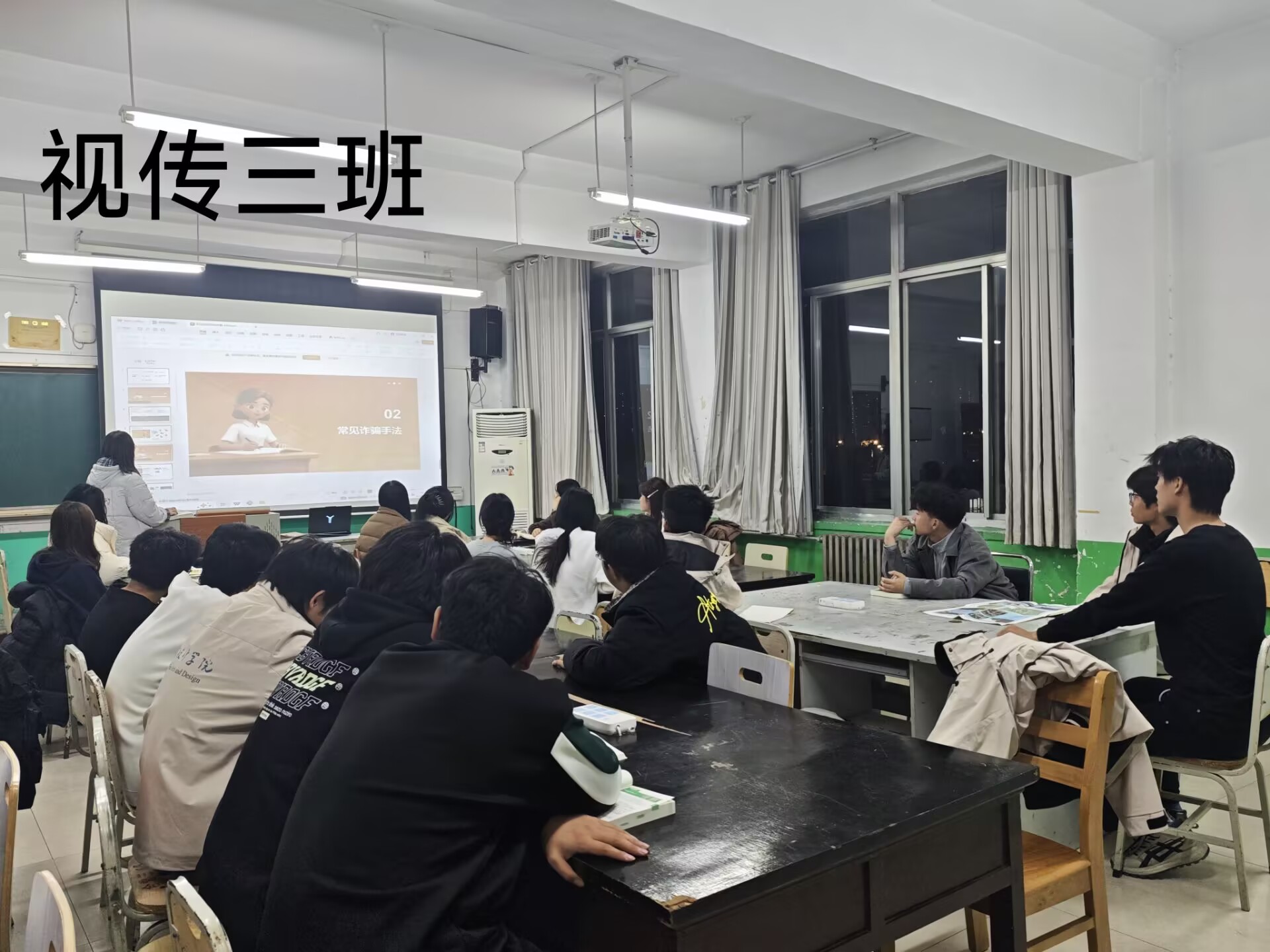 各班团支书们向同学们系统解读了电信网络诈骗的定义与“远程非接触、手段迭代快、分工严密”等核心特征,重点聚焦美术设计专业学生高频接触的典型骗局,结合案例拆解与话术对比,揭露诈骗分子利用学生兼职需求和专业认知盲区设下的陷阱。同时,通过展示“冒充客服退款”“虚假投资理财”“校园贷变种”等高校共性诈骗类型,补充讲解了一些通用防骗知识。
