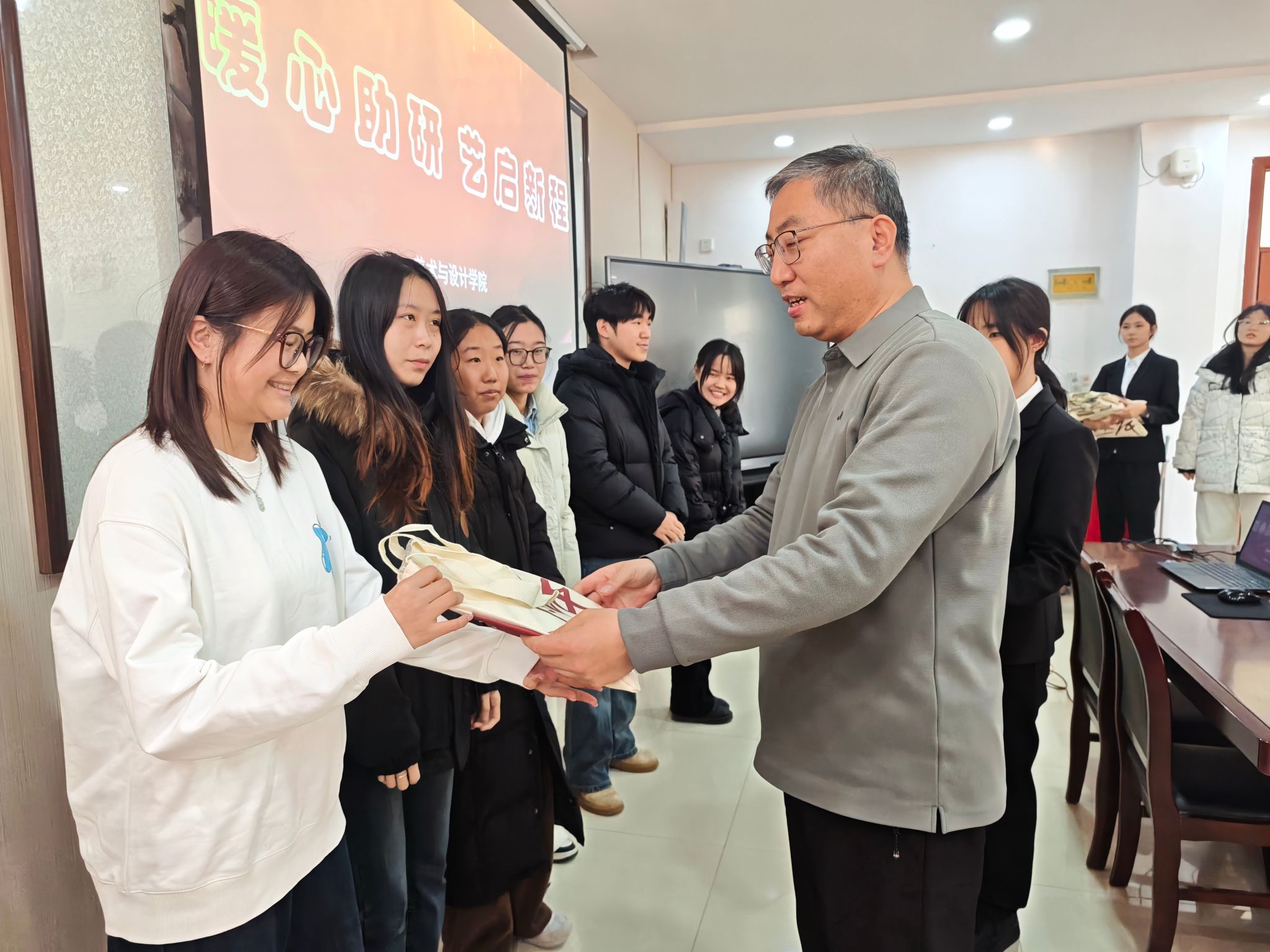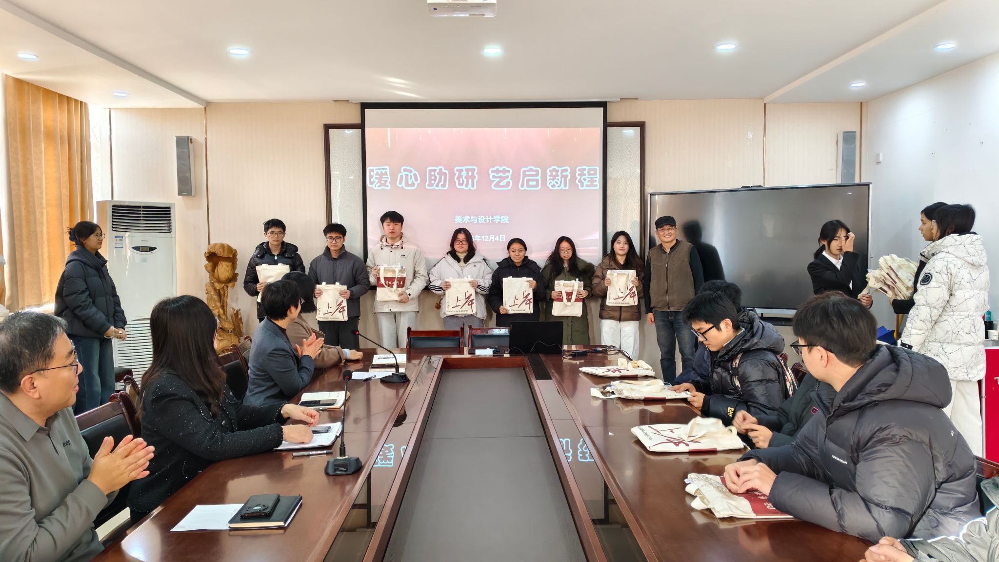 研途逐梦,暖意同行。2026年全国硕士研究生招生考试临近,为切实缓解考研学子备考压力、凝聚迎考奋进力量,12月4日下午,美术与设计学院于5号教学楼201会议室举办“暖心助研 艺启新程”考研学子慰问暨暖心礼包发放活动。学院党委书记刘红霞、院长高卓、党委副书记崔晓燕、考研班主任刁国强及全体辅导员与考研学子齐聚一堂,以精准指导与真挚关怀为逐梦之路保驾护航。活动由崔晓燕主持。