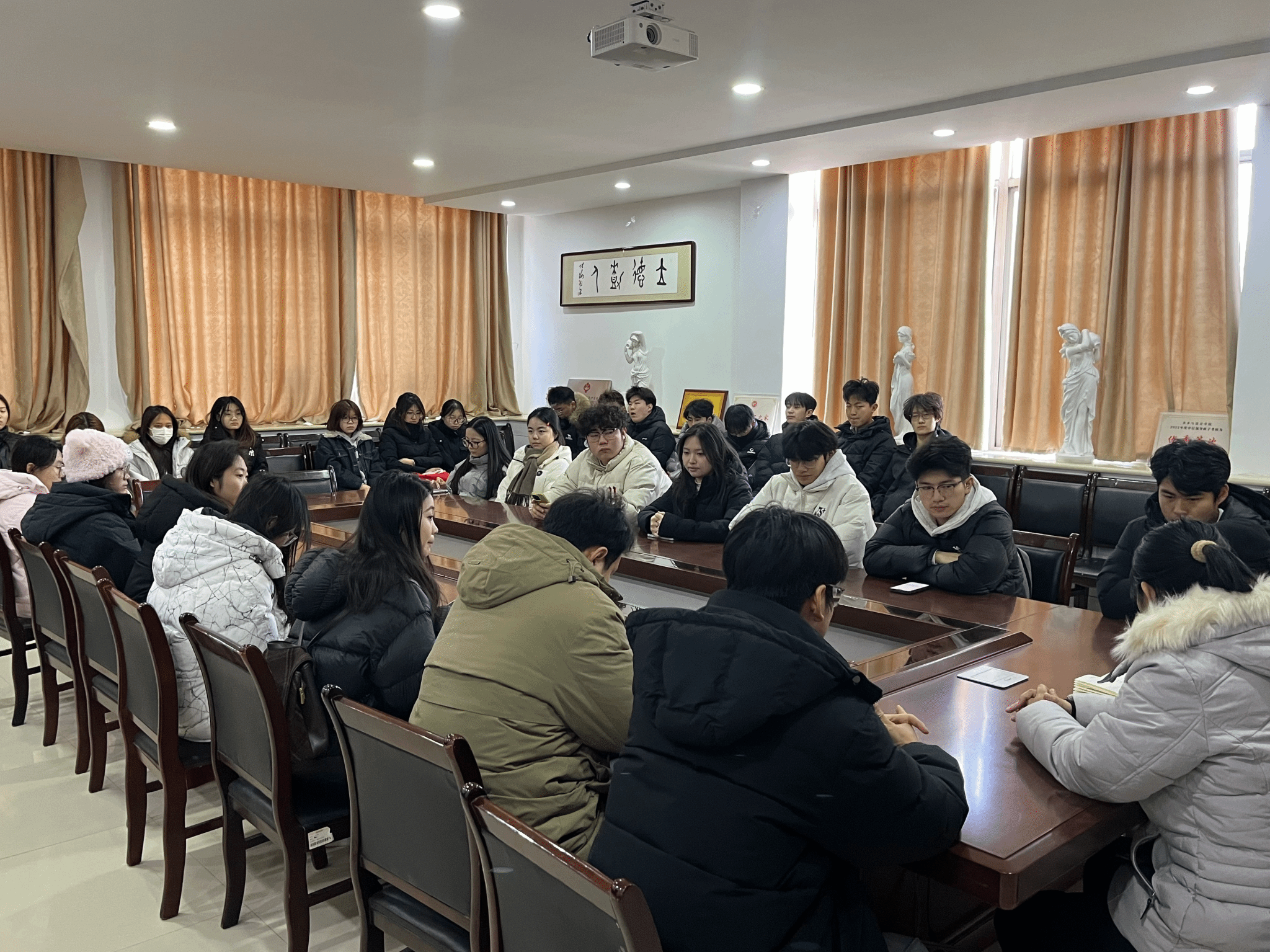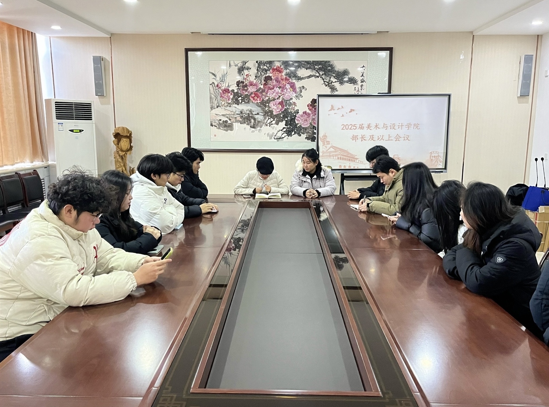 为保障学期末各项工作有序推进,明确工作职责、完善协作机制,12月25日,美术与设计学院于5号教学楼201会议室召开学生会、自律会全体部长及以上会议,会议由辅导员李毅、王静共同主持。