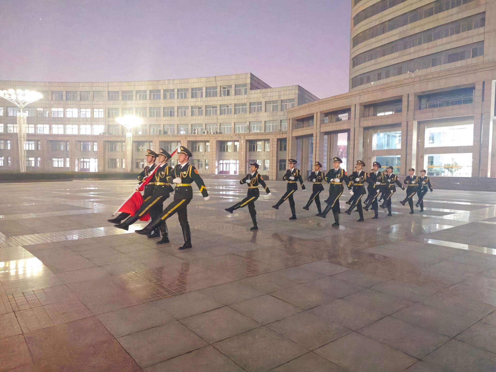 清晨,升旗仪式正式开始。激昂的《义勇军进行曲》奏响,菏泽学院国旗护卫队迈着铿锵有力的步伐,将五星红旗护送至升旗台。鲜艳的五星红旗在国歌声中冉冉升起、迎风招展,美术与设计学院的学子们整齐肃立,向国旗行注目礼,以庄严的姿态抒发对祖国的热爱与敬意。