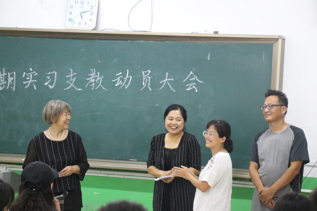 会上,杜老师叮嘱同学们在支教生活中一定要注意安全,并分享了自己的经验,也向同学们传授了很多生活妙招。党委副书记吕杰指出实习支教既是对自己专业的锻炼,也是服务地方的重要手段,希望同学们能在实习支教中努力学习,克服困难,展现出美术与设计学院学子的风采。随后周倩院长强调在支教中一定要注意教育方法,认真做好备课,耐心回答学生的问题,争取为自己的实习支教交上一份满意的答卷。最后高卓副院长对实习支教中同学们可能遇到的问题进行了补充。