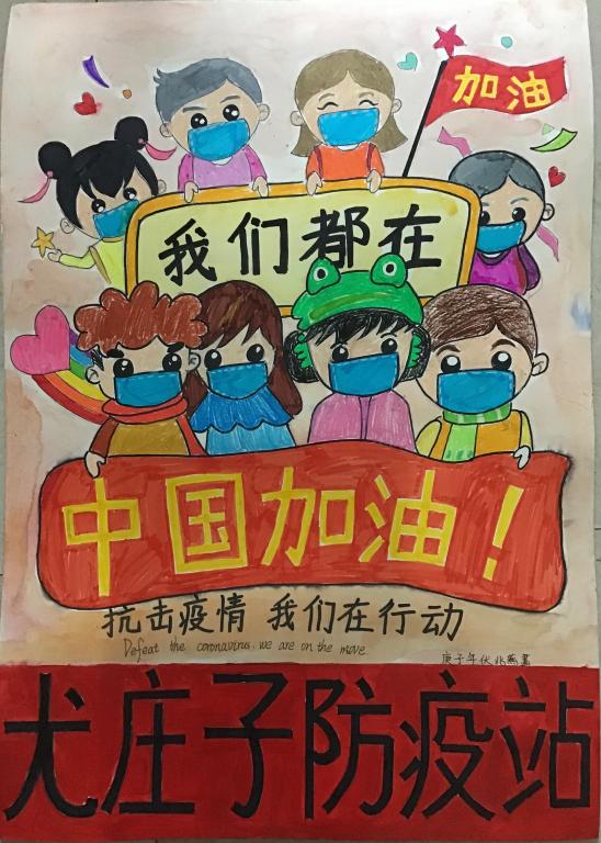 菏泽学院美术与设计学院17级美术学国画一班伏兆燕在临沂市河东区九曲镇东张官庄社区防疫检查站负责居民出入登记工作,并发挥专业特长,为社区防疫宣传绘制海报。