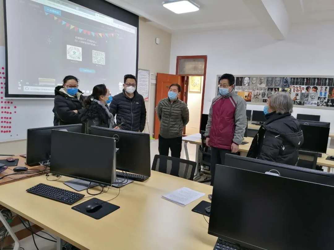 在美术与设计学院多媒体教室,周倩院长对我院“线上授课”的前期组织、准备情况和目前授课情况一一进行了汇报。随后,姜同松一行查看了刘颖、狄东占老师的在线授课情况,并对授课软件、授课效果、课堂互动、课堂考勤等方面分别进行了详细的询问,并提出要求。苗琳、谢芳两位老师在多媒体教室进行了线上授课的展示。