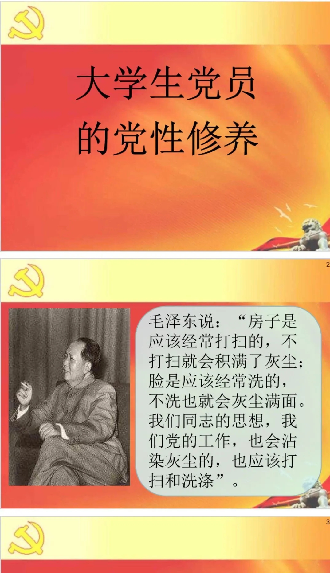随后,霍庆松为全体党员上了一堂题为《大学生党员的党性修养》的党课。从什么是党性修养和作为一名大学生如何加强党性修养两方面进行了探讨。期间,霍老师列举了在疫情期间的党员优秀案例,全体党员认真聆听。