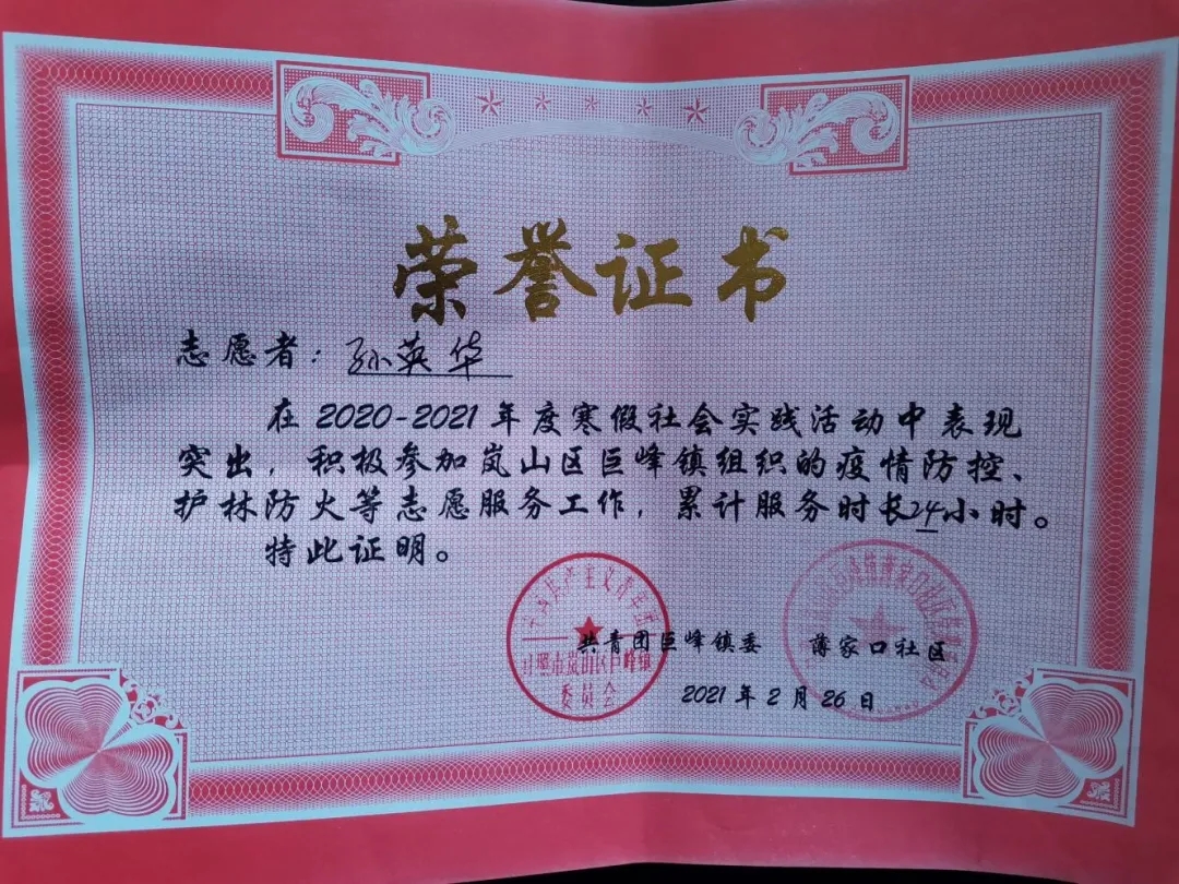 一场疫情,改变了很多人的生活轨迹。临近春节,我们进一步加强防控,为了将这个新年过的更加幸福。寒假期间,菏泽学院美术与设计学院学生党员孙英华同志接到日照市岚山区巨峰镇大岭村大学生志愿者服务活动的通知,主动参加这场战“疫”。孙英华同志也因为疫情多了一个身份——社区青年志愿者。