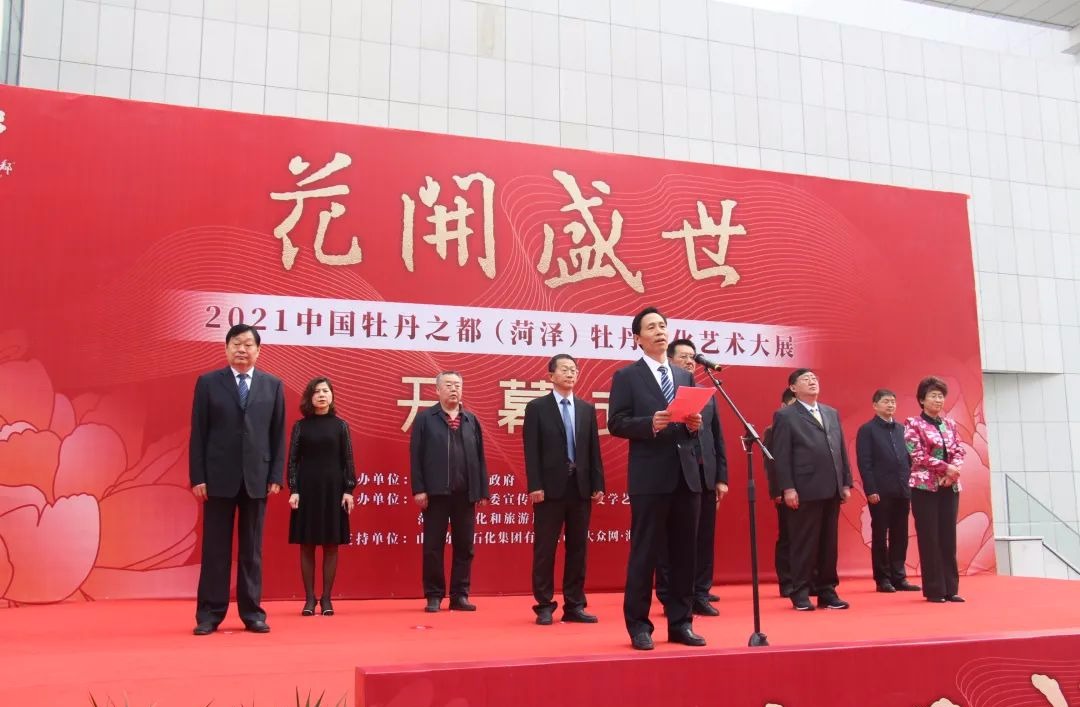 4月7日,“花开盛世”2021中国牡丹之都(菏泽)牡丹文化艺术大展在菏泽市市民文化中心开幕。菏泽市委书记张新文、菏泽市委副书记、市人民政府市长张伦、菏泽学院党委副书记赵汝坤、美术与设计学院党委书记李传峰参加开幕仪式。