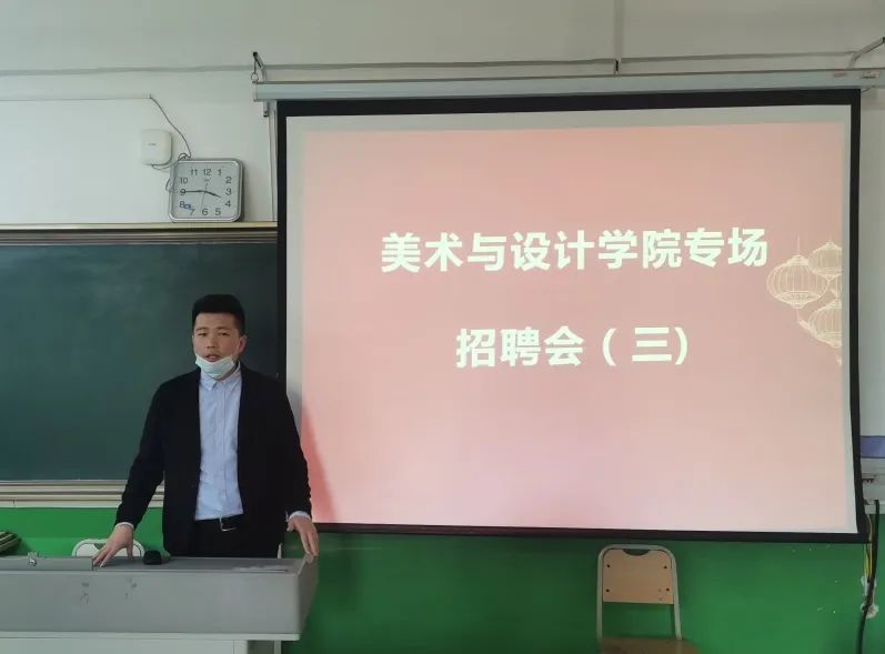 为帮助同学们更好的实现就业,让其所学专业用在就业方面上,2021年4月10日上午八点半,美术与设计学院专场招聘会在五号教学楼203教室举办。美术与设计学院20级导员张焱老师以及部分毕业生和准毕业生代表参加本次招聘会。