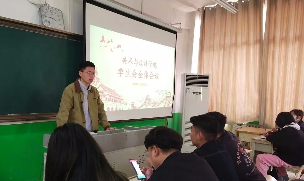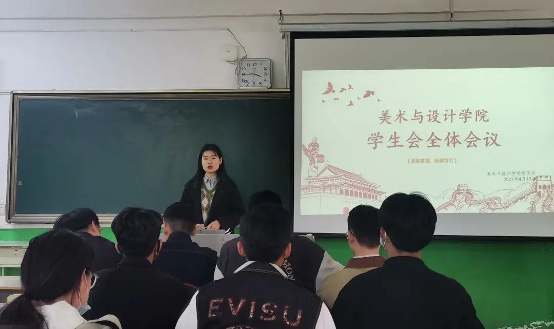 2021年4月13日中午12:20,美术与设计学院学生会全体会议于5号教学楼203教室召开,本次会议由美术与设计学院学生会主席赵冉主持,参加会议的有学生会主席团以及学生会全体成员。