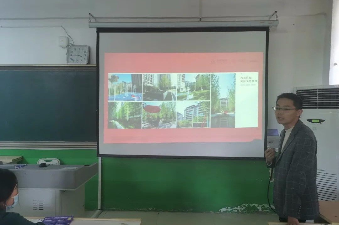 首先,张焱老师欢迎中南置地来美术与设计学院开展宣讲活动,并向学生们大概介绍了此房地产企业。紧接着中南置地企业的主讲人依次介绍了参加此次宣讲会的集团成员、集团简介和企业文化等。并对企业文化中的做事、行为、信仰、能量、待人等做了详细讲解。