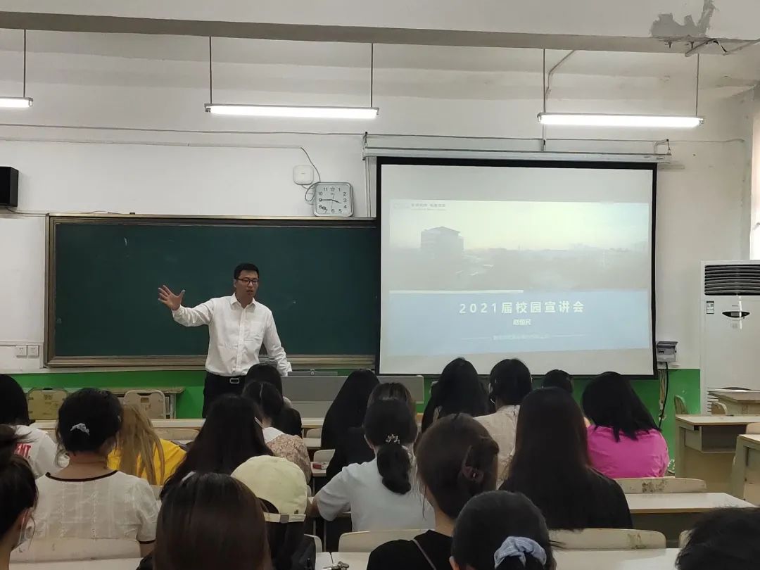 为了应对大学生就业形势的日益严峻,缓解当今大学毕业生的就业压力,5月21日下午四点半,美术与设计学院专场招聘在五号教学楼203教室举办。美术与设计学院20级辅导员何英及毕业生代表参加此次招聘会。