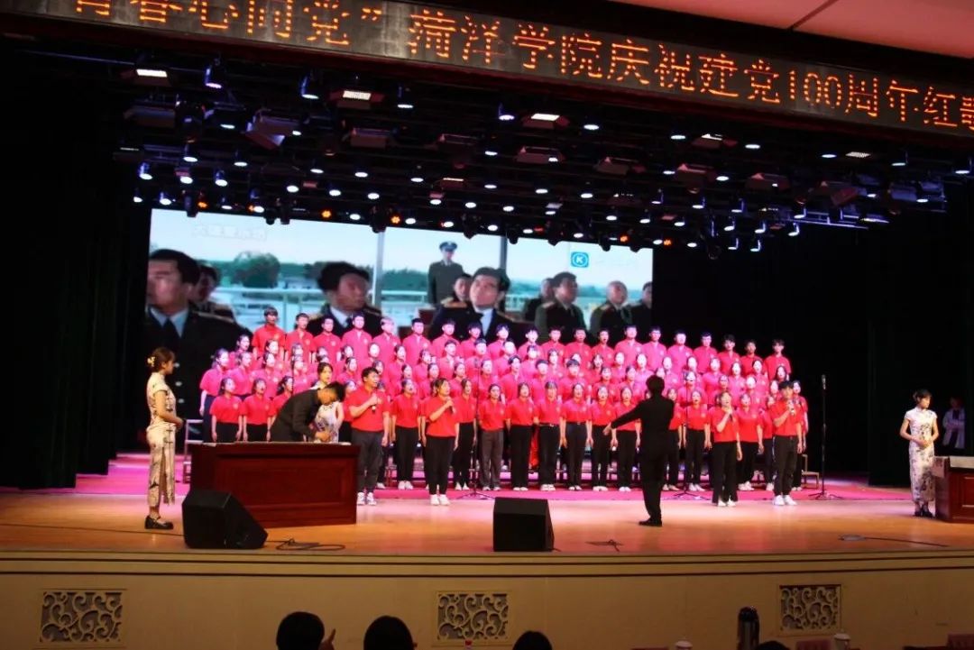比赛过程中,我院学子精神饱满、歌声嘹亮,展现了新时代青年朝气蓬勃的精神面貌;伴随着一首首红色歌曲,全场师生共同回望中国共产党栉风沐雨的漫漫征程,颂扬中国共产党波澜壮阔的峥嵘岁月,展望壮阔美好的新时代。在气势恢宏的合唱中,全场师生真切感受百年来中国共产党光辉灿烂的奋斗历程,坚定了坚定不移听党话、矢志不渝跟党走的决心;合唱融入书法、朗诵、绘画等多种表现形式,以朝气蓬勃的青春风姿颂扬中国共产党波澜壮阔的百年峥嵘岁月。