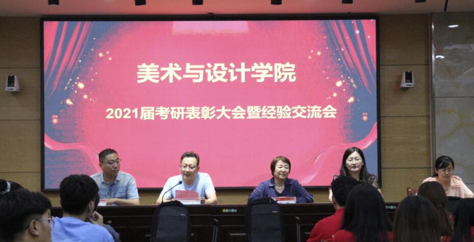 为表彰先进,树立榜样,促进学院优良学风的形成,2021年6月11日下午,美术与设计学院2021届考研表彰暨经验交流大会在老图书馆报告厅隆重举行。美术与设计学院院长周倩、党委副书记刘红霞、副院长高卓、学工办主任杜红梅、2021届考研班主任刁国强出席会议。会议由杜红梅主持。