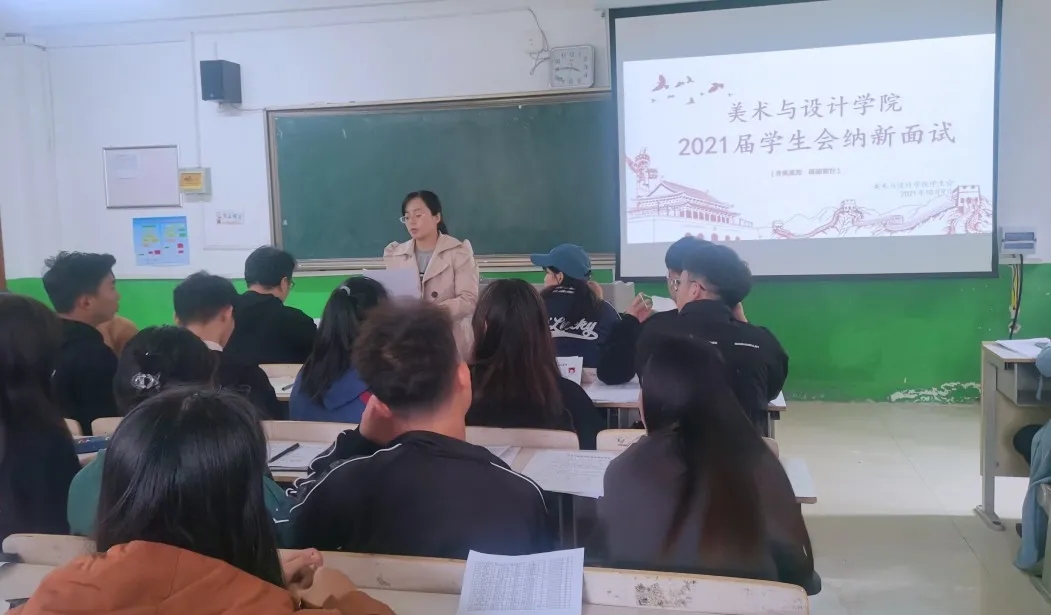 10月9日,美术与设计学院学生会纳新活动在5号教学楼203教室顺利召开。美术与设计学院党委副书记刘红霞、学工办主任杜红梅,辅导员郭江、张焱、张海洋及学生会主席团与各部部长参与了此次活动。