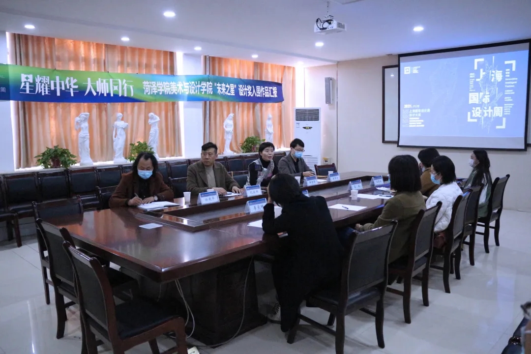 11月13日上海国际设计周2021年设计大奖菏泽赛区“未来之星”设计奖入围作品汇报在菏泽学院美术与设计学院201会议室举行,出席本次会议的评审专家有上海国际设计周菏泽站执行长、尚品本色木门董事长孔森林先生,山东省布艺协会副会长、米兰理工大学中国软装杰出设计师、上海国际设计周菏泽站理事兼评审官、卓品软装董事长任建华先生,米兰理工大学情景化大宅设计师、清华大学环境能量学研究员、上海国际设计周菏泽站理事兼评审官、匠舍全案设计机构总经理姜常安先生,菏泽学院美术与设计学院设计系主任韩素娟主任,菏泽学院美术与设计学院环境设计专业教研室主任王彤云主任,以及菏泽学院美术与设计学院环境设计专业教师赵一静、李曼琦、高威老师。