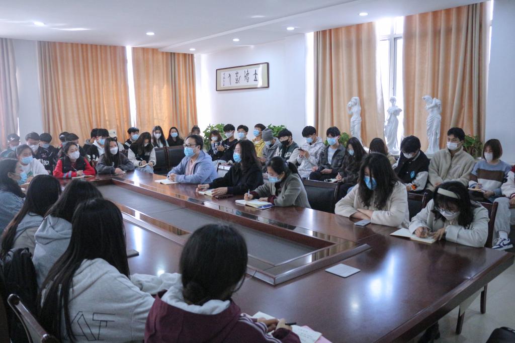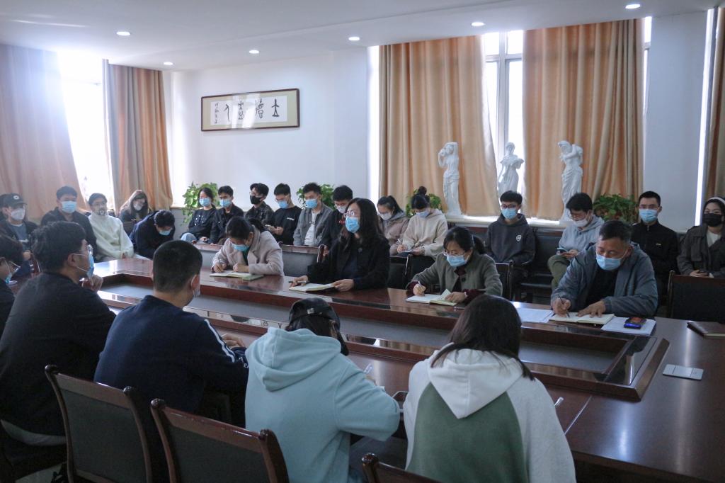 会议开始,美术与设计学院党委副书记刘红霞首先介绍近期疫情防控工作安排,提出非必要不出校原则,建议同学们在周末进行宿舍卫生大扫除,以此提高自我防护的意识。其次,要求各位班委同学在疫情期间严格执行课堂考勤流程,引导同学们以积极的心态面对疫情。同时,着重强调同学们要做到“不信谣、不传谣、不造谣”,共同做好疫情防控工作。