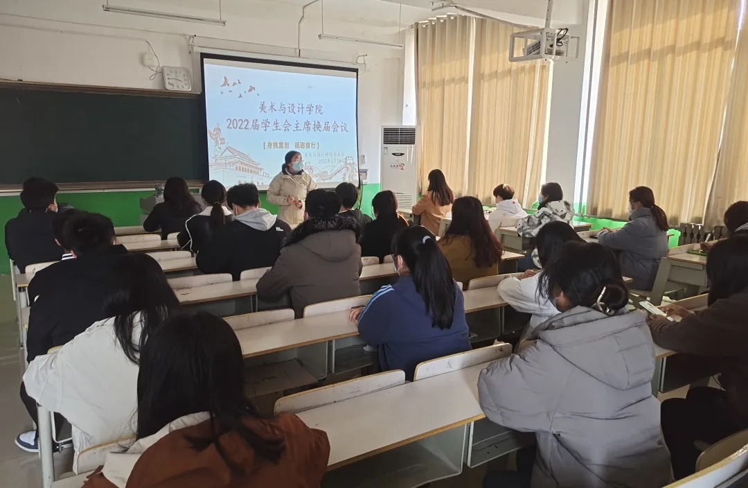 3月18日下午,美术与设计学院在203教室召开2022届学生会主席换届大会。美术与设计学院党委副书记刘红霞、学工办主任杜红梅、辅导员王静、张海洋以及美术与设计学院学生会干部参加本次换届大会。本次大会由杜红梅老师主持。