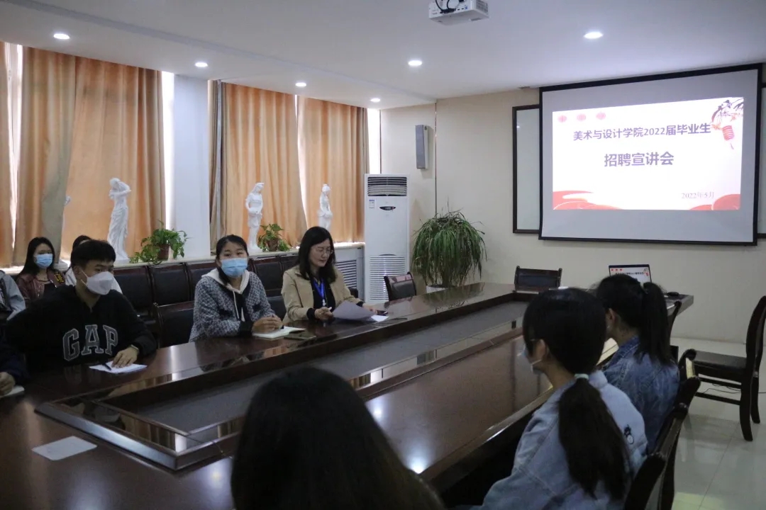 为提升毕业生就业质量,切实做好2022届毕业生就业工作,5月11日,美术与设计学院召开了2022届毕业生就业促进周专场招聘宣讲会。美术与设计学院党委副书记刘红霞、辅导员王静、2022级毕业学生代表出席本次会议。