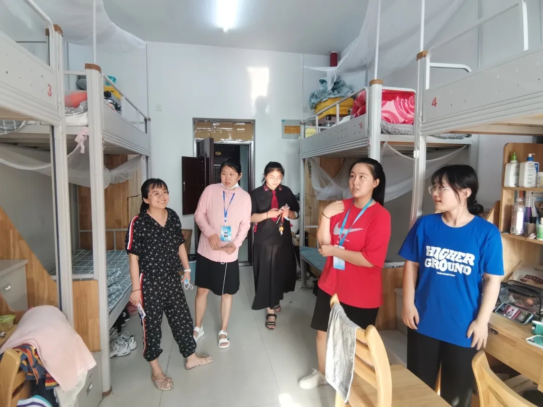 为了加强学生宿舍管理,规范学生行为,提高学生宿舍安全意识,创建整洁文明的宿舍生活环境。6月2日下午四点半,美术与设计学院学工办主任杜红梅,辅导员王静、郭江、张海洋对学生宿舍进行检查走访。