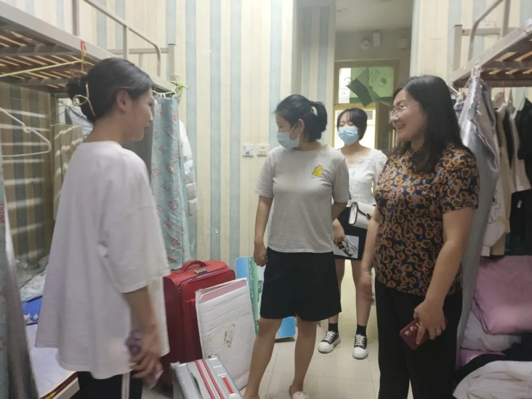 正值毕业生离校期间,为加强学校寝室管理,维护学校寝室秩序,保证毕业生安全离校、文明离校、有序离校。6月12日晚八点,美术与设计学院党委副书记刘红霞、学工办主任杜红梅、辅导员王静、郭江、张焱、张海洋、何英走访毕业生寝室。