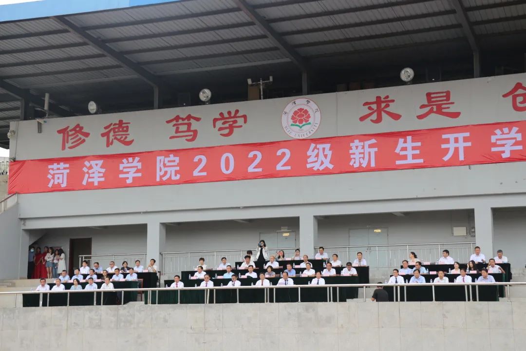 2022年9月9日,菏泽学院2022级新生开学典礼暨军训动员大会在田径场举行。美术与设计学院党委书记,院长李传峰,党委副书记刘红霞、22级辅导员王静、李毅以及各班班主任与22级全体新生参加了本次开学典礼。