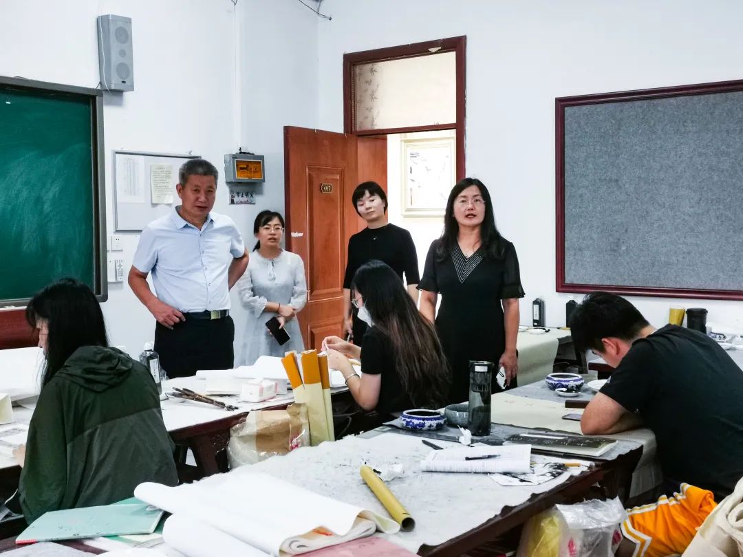 在战“疫”中坚韧前行,在奋斗中永不止步。为了更全面了解学院线上教育教学工作的开展情况,规范教师的线上教学行为,保证线上教学工作有效开展。9月19日,美术与设计学院党委书记、院长李传峰,党委副书记刘红霞,副院长高卓,副院长韩素娟,学工办主任杜红梅、实验室主任陈妍言、考研班主任刁国强对我院线上教学工作进行检查指导。