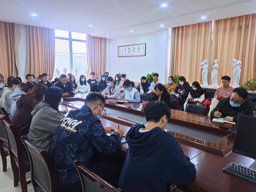 美术与设计学院学生会、自律会换届工作已圆满完成,为保证学生会各项工作的顺利开展,鼓励学院新一任学生会各部门负责人积极投入到学生会的各项工作当中,2022年10月4日上午10点,美术与设计学院于5号楼201会议室召开学生会、自律会全体学生干部工作会议,美术与设计学院学工办主任杜红梅,辅导员郭江、张海洋、王静、李毅和学院学生会、自律会全体干部参加本次会议。