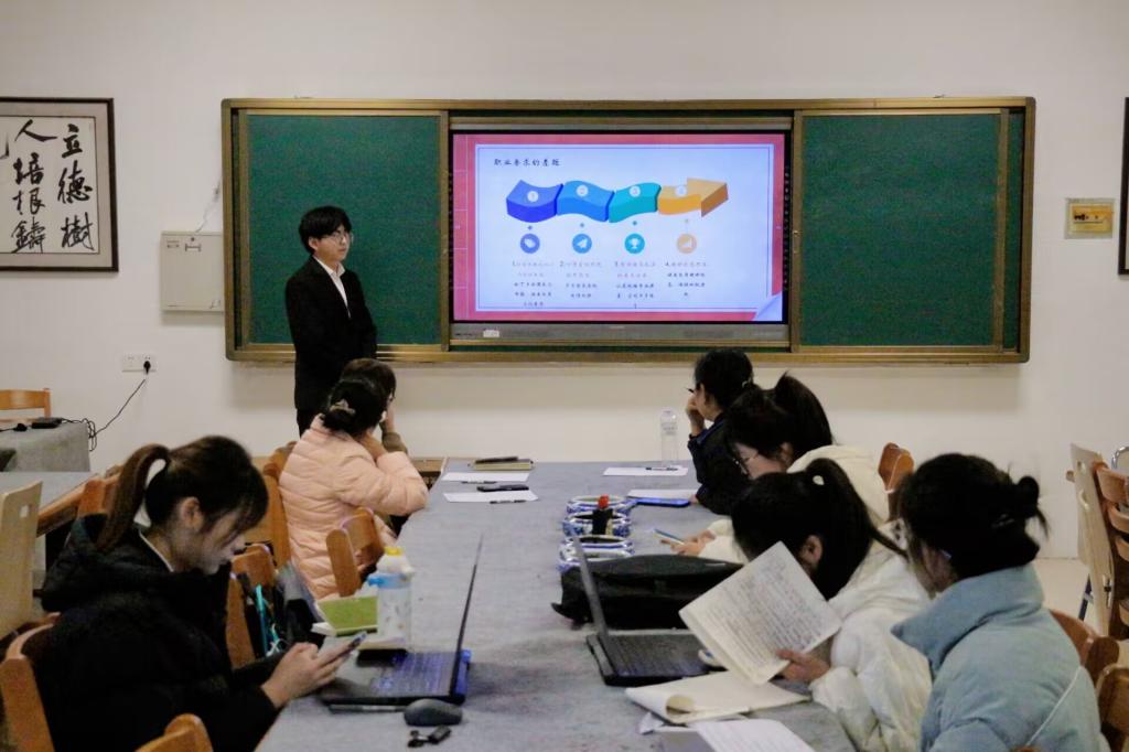 比赛过程中,选手们以PPT的形式通过自我剖析来判断自己与职业的匹配度,针对自身意向岗位,展示自己的岗位适应能力及未来发展规划等内容,讲解过程中,选手们情感饱满,自信大方,观点清晰明了,表达流畅自然,充分展现了美院学子的青春风采。展示结束后,杜红梅老师对各位选手的职业生涯规划完整性、逻辑性、美观性等方面进行全方位的点评,并对各位选手在展示中出现的问题提出指正和建议,让同学们受益匪浅。