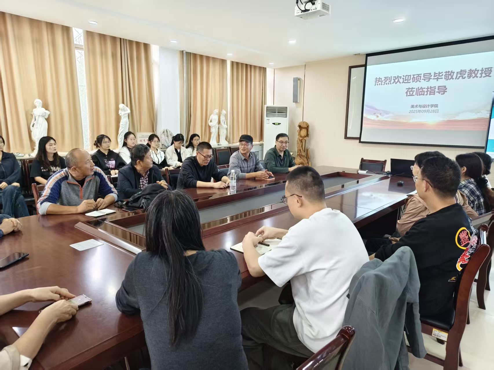 为深化“以赛促教、以创促学”人才培养模式,切实提升学生专业创作能力与师范核心技能,9月28日下午,美术与设计学院在5号教学楼201会议室举办从业技能大赛专项指导活动,特邀中国美术家协会会员、曲阜师范大学美术与书法学院硕士生导师毕敬虎教授担任主讲嘉宾。学院院长高卓,美术系、设计系相关负责人及美术系师生代表参加活动。