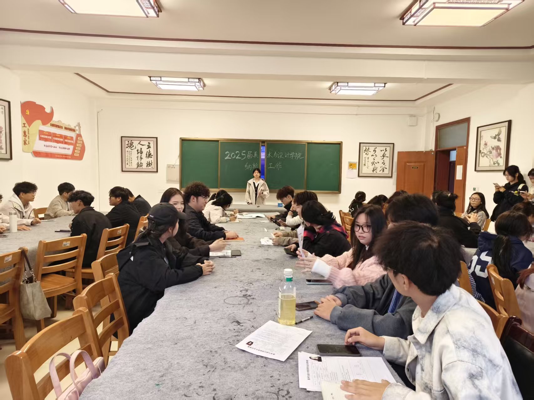 为进一步加强学生会、自律会建设,提高工作效率,2025年10月9日下午,美术与设计学院于5号教学楼204、303教室分别开展2025届美术与设计学院学生会、自律会纳新工作。美术与设计学院学工办主任杜红梅,辅导员王静、李毅、何泳葶及学生会主席团与各部部长参与了本次纳新工作。