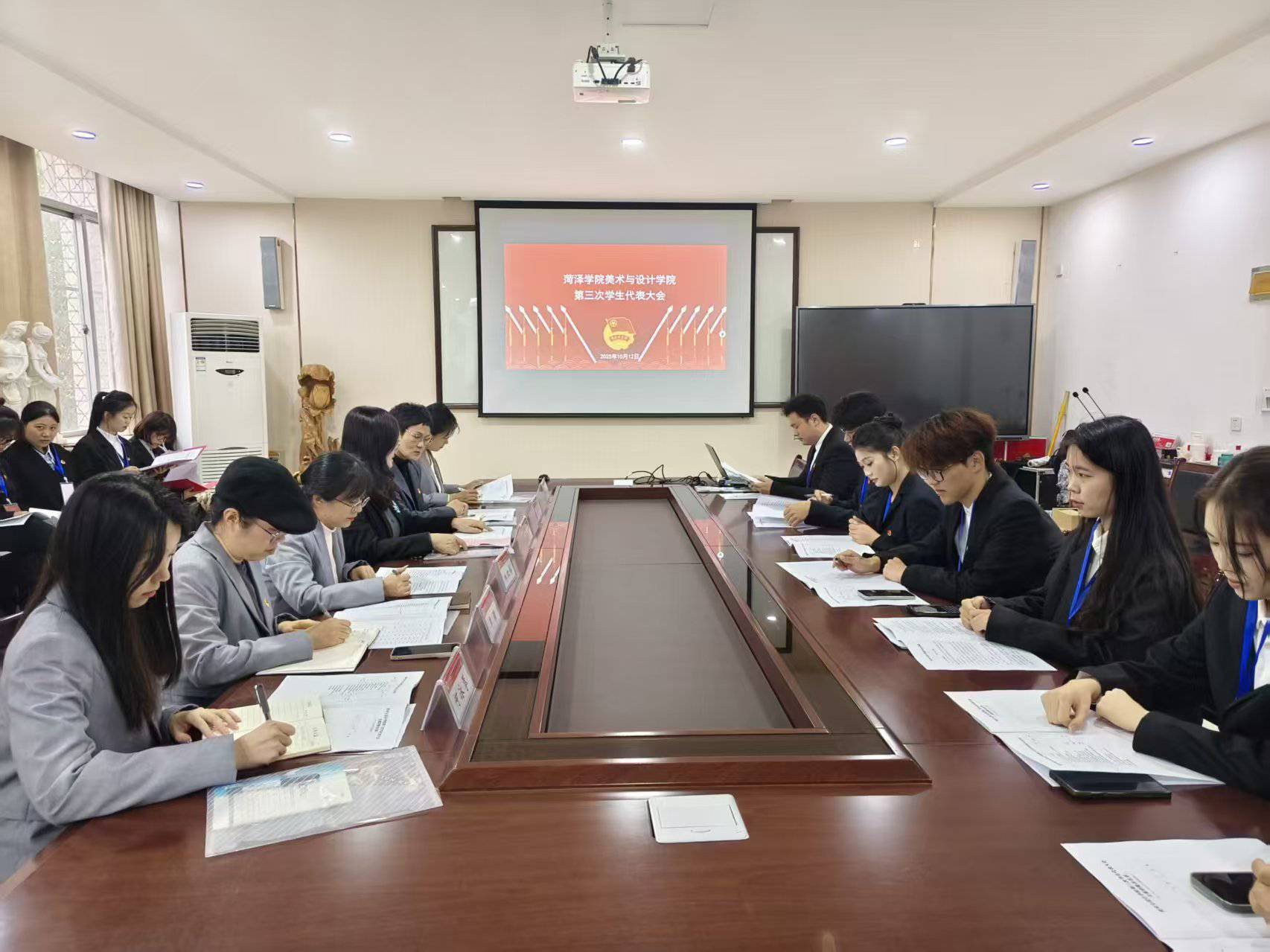 2025年10月12日下午,美术与设计学院第三次学生代表大会在5号教学楼201会议室隆重召开。美术与设计学院党委书记刘红霞、党委副书记崔晓燕、学工办主任杜红梅、团委书记王静以及全体辅导员及大会正式代表共60余人参加此次会议。本次会议由学生会主席团成员王世升主持。