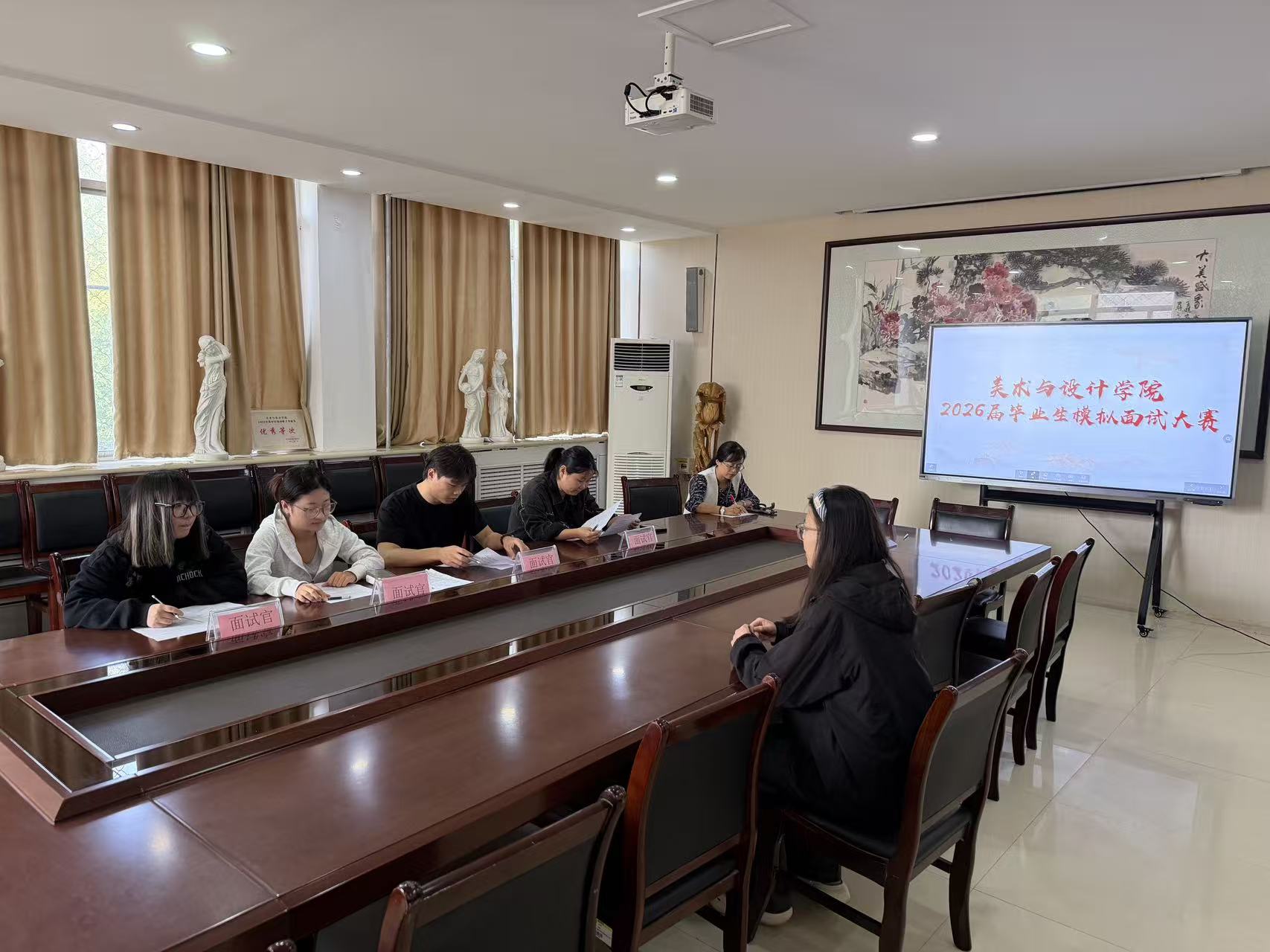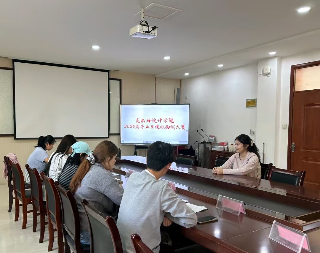 为助力2026届毕业生提升求职核心能力、熟悉面试全流程,增强就业竞争力,美术与设计学院于10月15日上午在5号教学楼201会议室举办2026届毕业生模拟面试大赛。本次活动由美术与设计学院学工办主任杜红梅、辅导员王静以及3名优秀学生代表共同组成面试官团队,为参赛毕业生提供专业评审与指导。