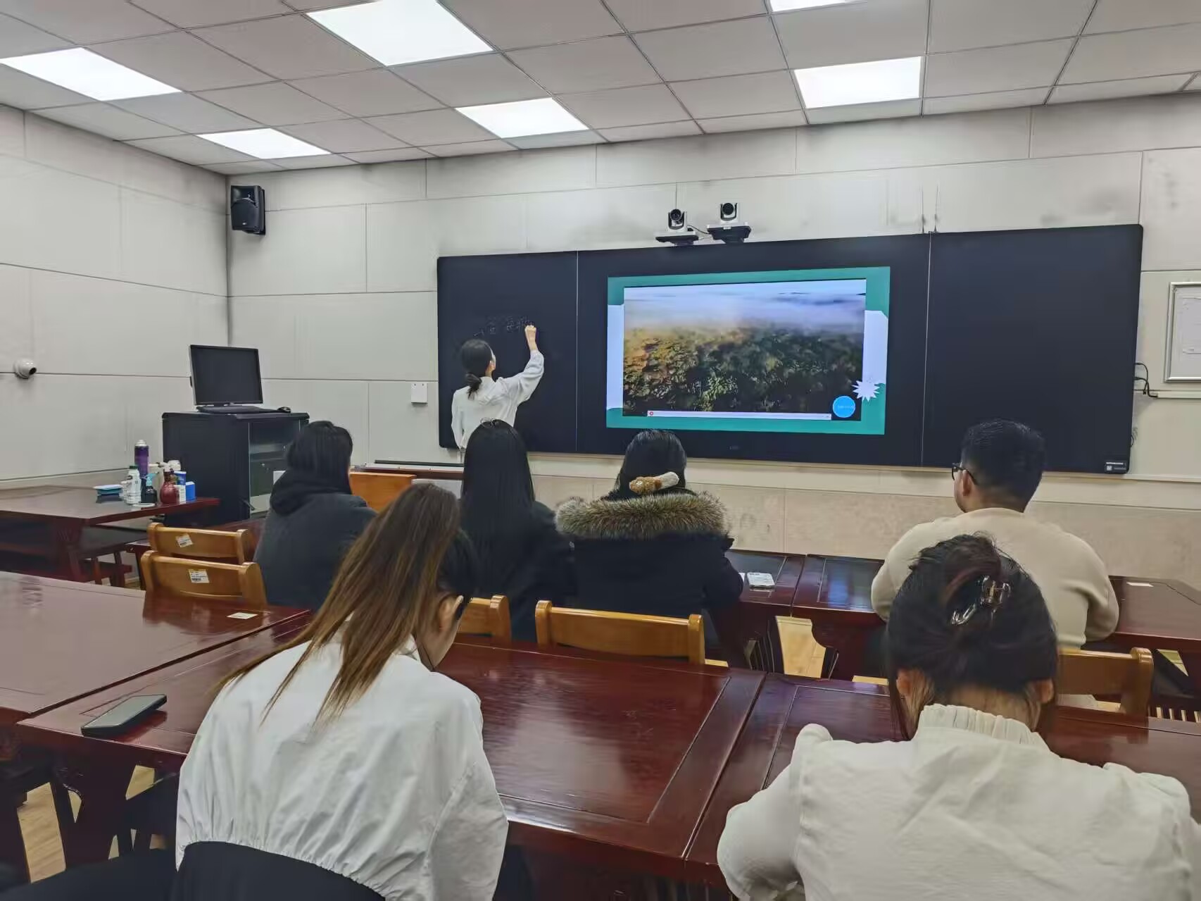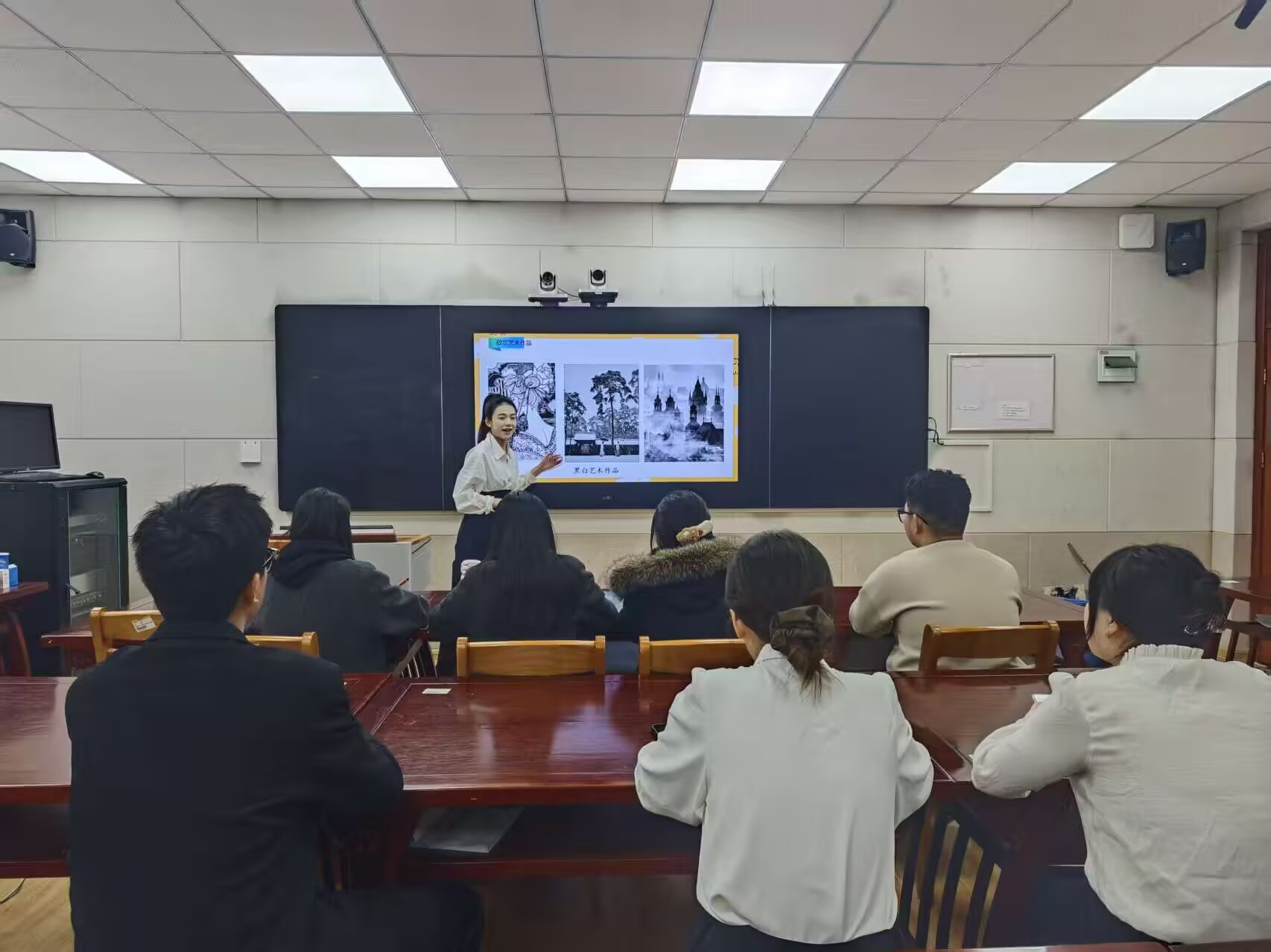 为提高师范类毕业生从业技能水平,10月27日,美术与设计学院于5号教学楼105教室举办2026届毕业生美术学(师范类)试讲大赛。美术与设计学院辅导员王静以及第13届山东省师范类从业技能大赛获奖者作为评委出席。