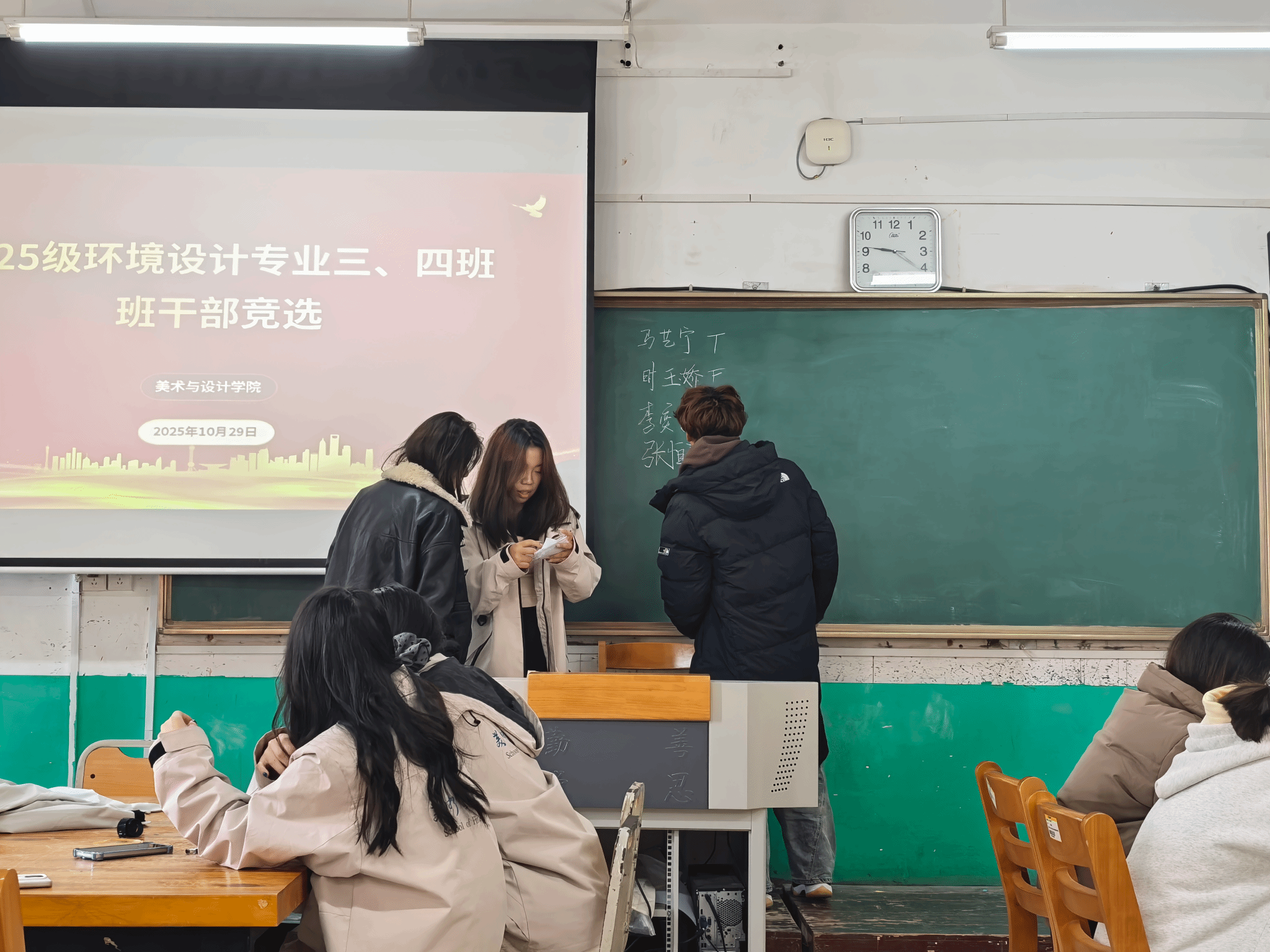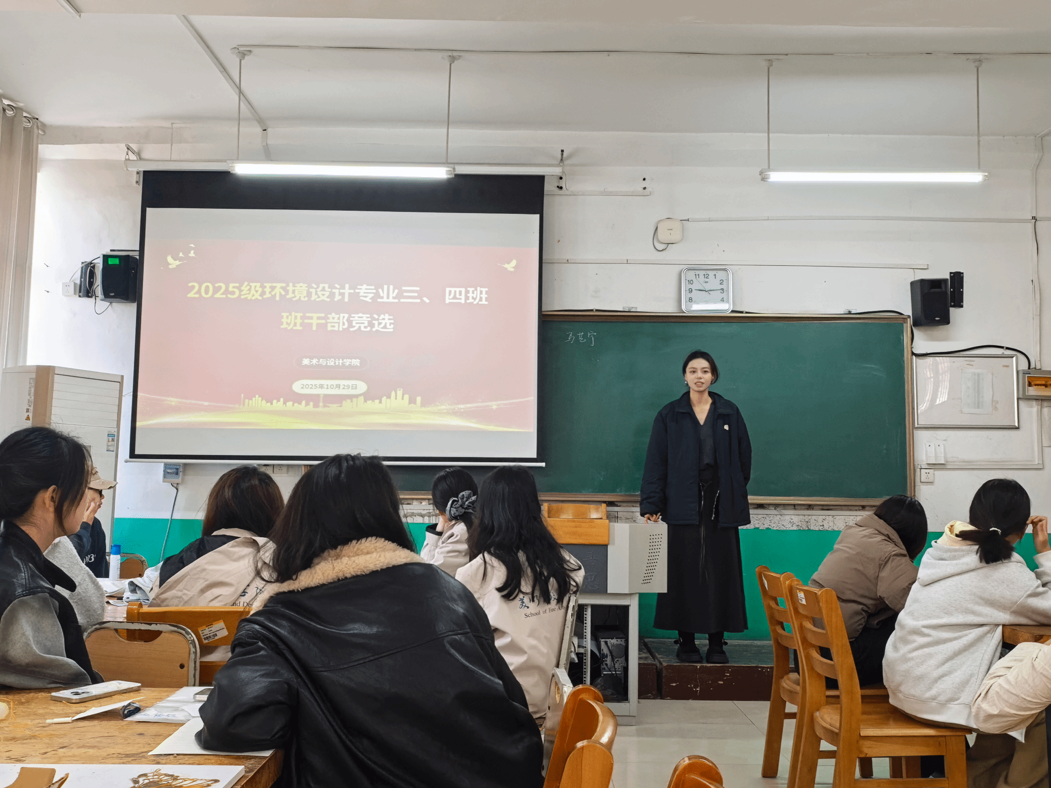 为进一步加强班级组织建设,锻造一支信念坚定、能力突出、心系同学的学生干部队伍。10月31日,美术与设计学院顺利完成了2025级班委的竞选工作。本次竞选遵循公平、公正、公开的原则,在2025级入学并经历了一段时间的试用与磨合后,通过民主评议与公开竞选相结合的方式,为各班选拔出了新一届的班委。