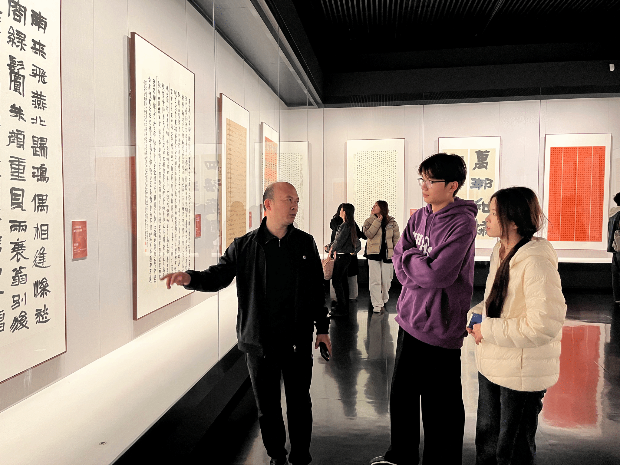 此次观展将课堂延伸至展厅,不仅让同学们直观感受了隶书艺术的独特魅力,巩固了专业技法认知,更在师生互动探讨中凝聚了学习热情,为后续书法创作与研究注入了新的灵感。