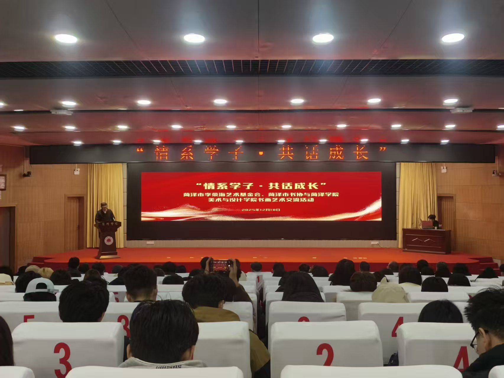翰墨飘香润桃李,丹青溢彩育新人。12月18日,菏泽学院美术与设计学院联合菏泽市李荣海艺术基金会、菏泽市书法家协会在菏泽学院图书馆报告厅举办“情系学子·共话成长”书画艺术交流活动。