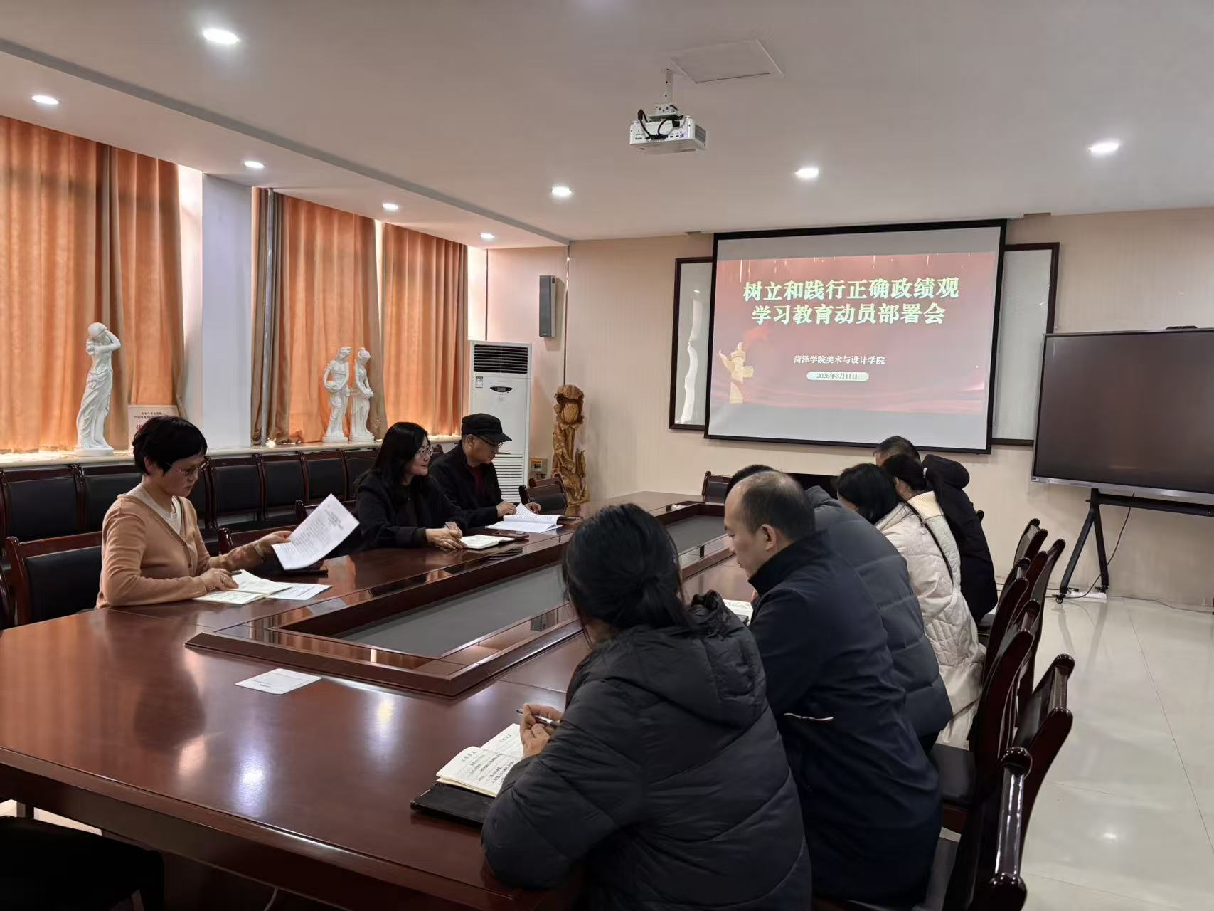 3月11日下午,美术与设计学院召开党委扩大会议,部署树立和践行正确政绩观学习教育工作。学院党委领导班子成员、各党支部书记参加会议,会议由党委书记刘红霞主持。