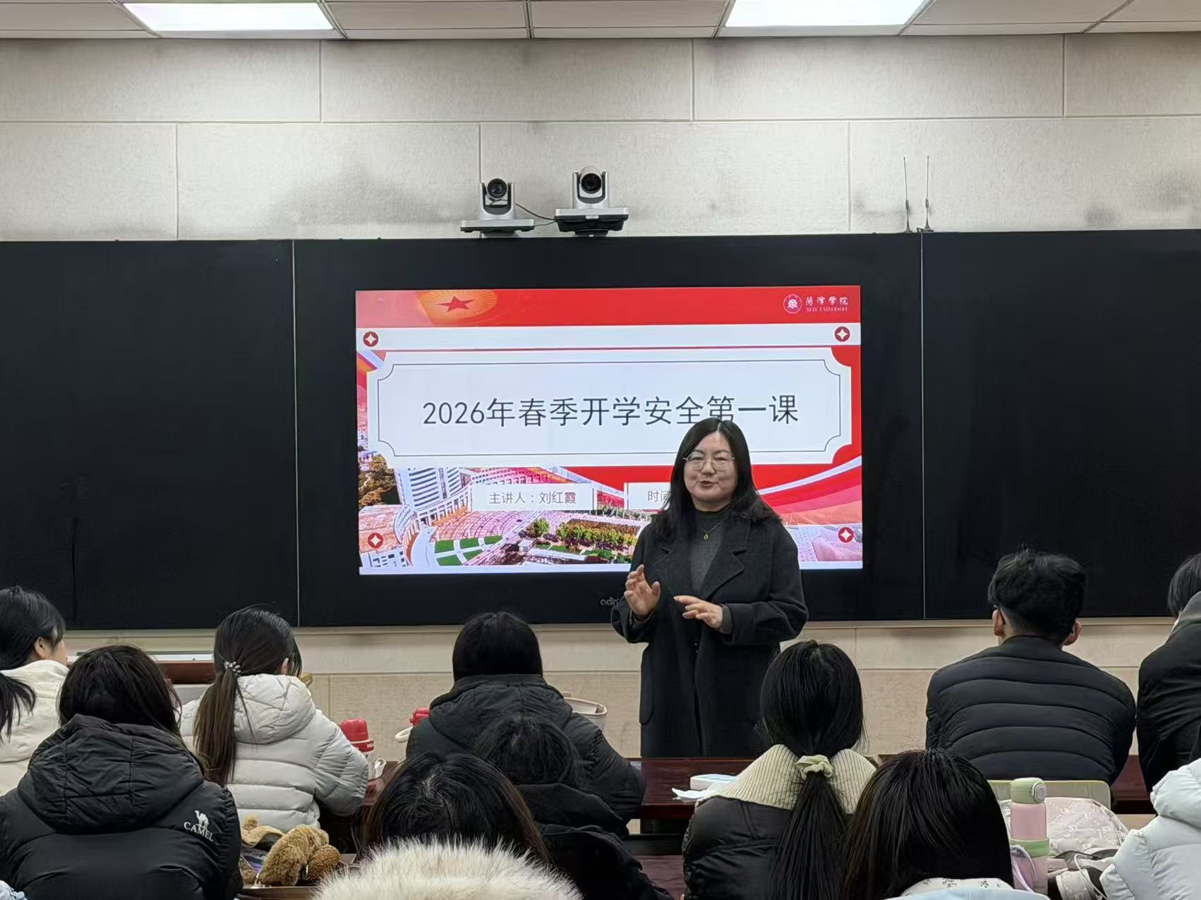 本次“开学第一课”紧扣铸牢中华民族共同体意识与校园安全双线主题,教师结合民族团结历史故事,引导学生理解“休戚与共、荣辱与共、生死与共、命运与共”的共同体理念,弘扬团结精神;重点解读防范宗教渗透、维护校园安全稳定等内容,强化安全防范意识与防护技能。同时立足专业特色,融入新学期学习要点、行为规范与学业规划,助力学生调整状态。课程尾声,教师寄语学子以专业践行文化传承,坚定理想信念,自觉维护校园思想安全,奔赴成长新征程。