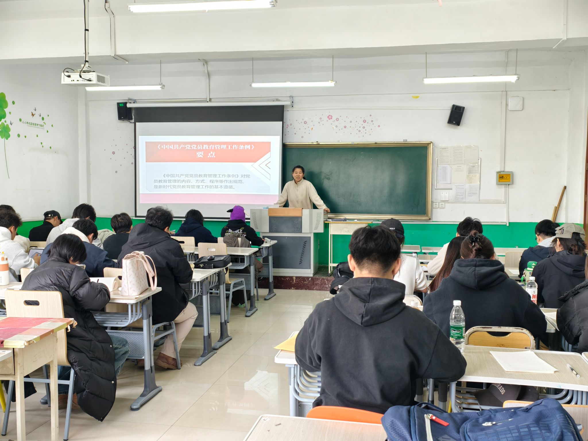 刘红霞结合学院实际阐明党课意义,要求学员提高站位、端正态度、强化实践,以“学思用贯通”的态度深学党的理论。崔晓燕以《中国共产党简史》为核心内容,通过梳理关键历史节点、解读重要奋斗事件,带领参训学员系统回溯党百年来波澜壮阔的奋斗征程,为学员筑牢思想根基提供有力指引。王静解读《中国共产党党员教育管理工作条例》及发展党员工作流程,明晰党员成长的规范路径。杜红梅以“重温伟大建党精神”为主题授课,引导学员从精神根脉中汲取奋进力量。何泳葶聚焦《中国共产党章程》与党员应知应会基础知识,夯实学员理论根基。李毅带领大家学习《关于新形势下党内政治生活的若干准则》,明确党内政治生活的基本遵循。